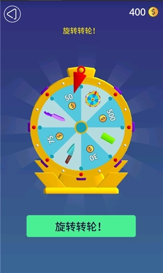 5、下方设有一个抽奖转盘,通过它可以获取金币奖励、小刀等物品。