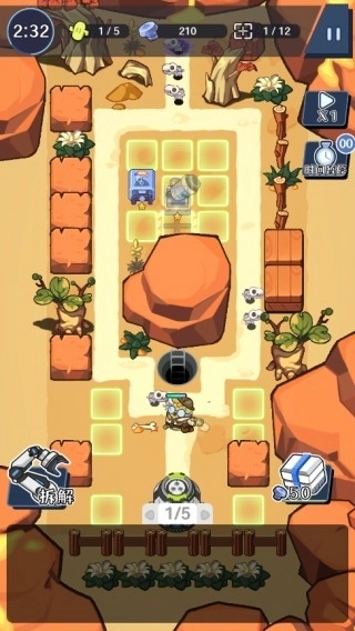 2、不同的炮塔的攻击范围和效果都不相同,并且相同的炮塔可以合成升级。