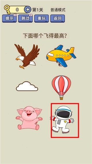 2、进入第一个场景后,会遇到提问“哪个飞得最高”的环节,此时选择下方的宇航员选项即可。