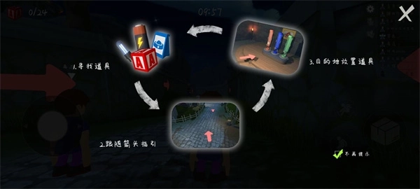 4、游戏左侧区域用于操控角色移动,点击右侧的箱子图标,角色就能一键切换成箱子形态,以此躲避怪物的视线。