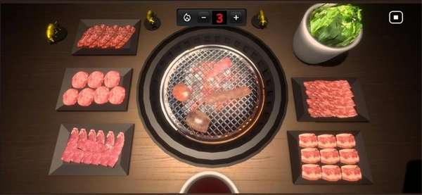 2、游戏里准备了多种多样的食材与调味品供玩家挑选,大家能依照自己的喜好来进行富有创意的搭配,制作出拥有独特风味的烤肉。