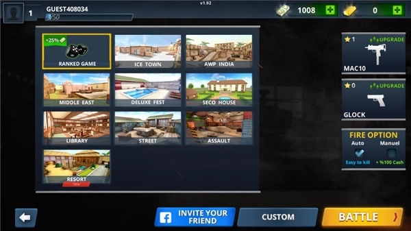 1、游戏中的武器选择面比较广,各种玩法模式一应俱全,场景多样,随时都能选择battle模式,开始你的战斗,刺激战场等你来解锁。