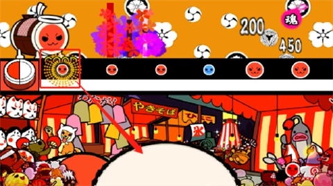 1、红色区域:击打鼓面。分数依据连段数与精确度来评定,其中“良”的得分是“可”的两倍。 ·蓝色区域:击打鼓边。分数同样根据连段数和精确度判定,“良”的分数为“可”的两倍。