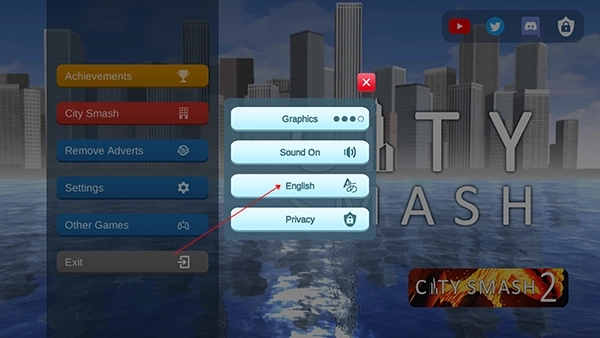1、游戏安装完成后启动,初始语言显示为英文,第一步请点击“设置”选项