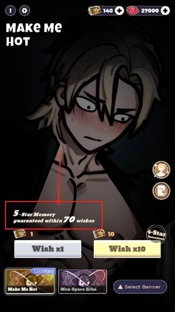 1、进入游戏后,能看到抽卡界面和恋与深空的基本一致,这里的五星保底机制是70抽。