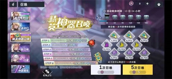 4、建议玩家每个月至少完成30次精英神器召唤,这样能让黄色武器的供给保持稳定,避免养成进度出现断档的情况。