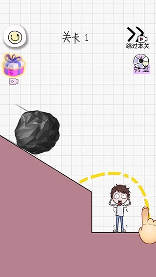 2、来到第一关,这一关难度不大,只要从角色的头顶画一条毛线就能通关了。