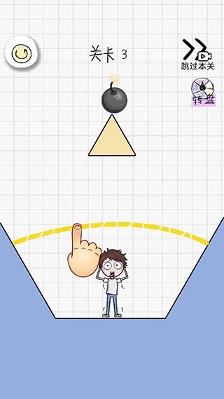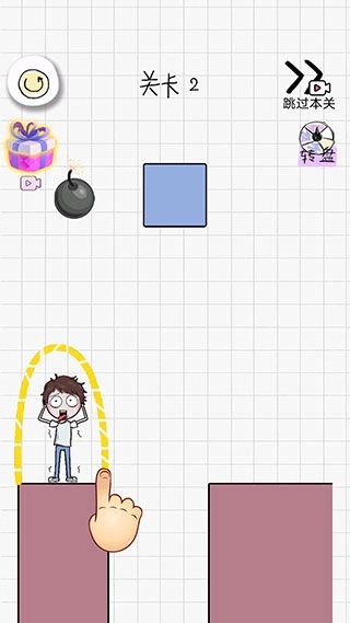 4、进入第三关后,能看到角色处于谷底,我们要在他的头顶画一条毛线。