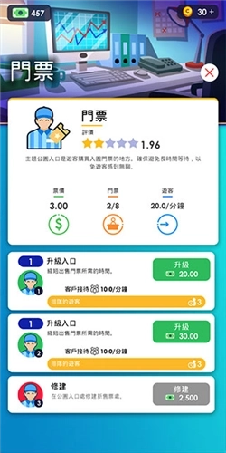 5、对游乐设施进行升级,提升其等级,以便容纳更多游客同时游玩,从而带来更高的收益。