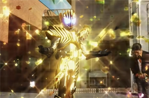 汇聚了平成所有骑士的力量,甚至还融入了令和骑士零一的力量,胸前与披风处都挂着骑士卡片,只是整体表现不太理想。