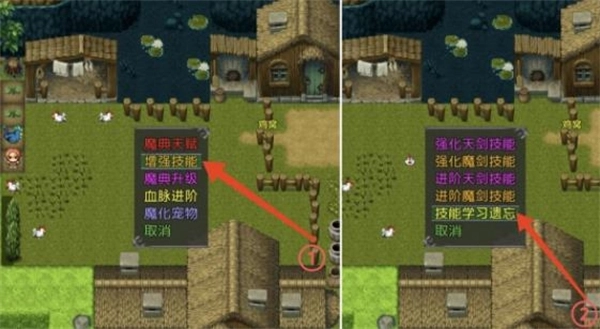 5、第一天晚上可以选择挂机打史莱姆,这里没有boss,只要有回血珠基本就不会失败。主角有蓝的时候会自动释放魔剑技能,如果不想用这个技能的话可以选择遗忘它,遗忘和重新学习都没有任何限制和消耗,不过遗忘的时候会提示会清除该技能的强化等级。
