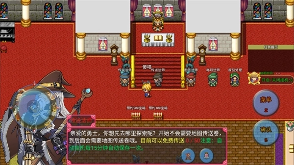 7、回到传送教堂,进门右转找到任务法师领取任务,接着和传送法师对话,就能传送到野外,按照任务要求去杀怪了。