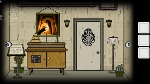 6、打开初始场景中间桌子下方右侧的柜子,该柜子需按顺序点击上面的按钮方可开启,开启柜子的密码为371856249,打开柜子后可获得【美工刀】。