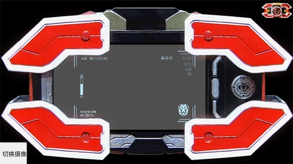 刑天召唤器的核心体验围绕“变身仪式感”的数字化还原展开。玩家完成预设操作(比如输入剧中经典密码“5201314”)后,召唤器便会启动完整的变身体验流程:屏幕先被红色光芒笼罩,同时响起电流音效与原版配音“刑天铠甲,合体!”,虚拟召唤器从手机屏幕里“浮现升起”,镜头以45度俯角拍摄玩家握持手机的手部,复刻剧中主角高举召唤器的经典视角。