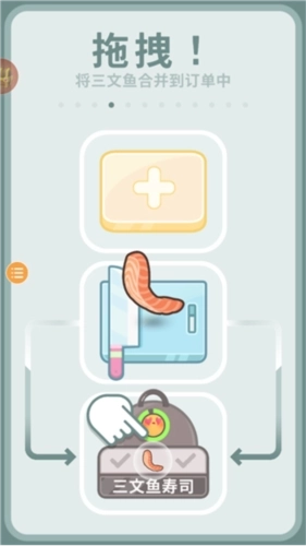 5、接下来进行寿司的合成,之后通过点击操作,把做好的菜肴递送给顾客,以此获取相应的报酬;
