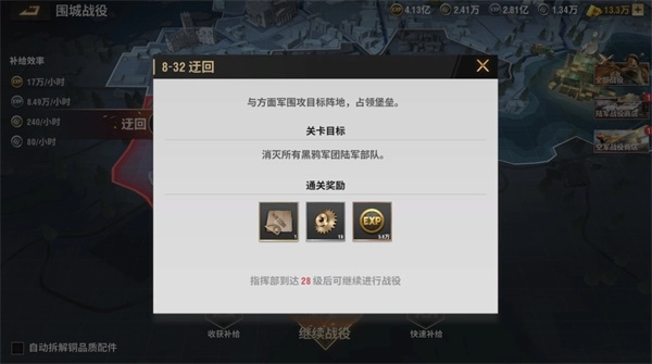 子弹与经验是解锁兵种等级的关键资源,玩家需要尽可能多地收集它们——随着兵种等级提升,部队对这两项资源的需求会急剧增加。获取子弹的主要渠道是战役系统:攻打战役关卡、领取战役补给、在战役商店兑换,都能得到大量战役资源;此外,击败新等级的黑鸦部队、从VIP商店购买,以及参与部分活动,也能获得少量子弹和经验。