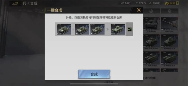 兵卡可以在装备研究室中,通过消耗同阵营同级别兵种或者同级别同名兵种来合成并提升星级。兵卡有整星和零星之分,整星指的是4星、5星这类,这类整星兵卡需要同名兵卡才能合成,例如四星需要3个相同的,五星则需要2个相同的。