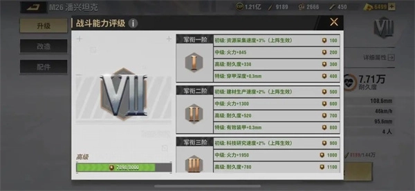 兵卡升级后,兵种的火力、耐久度等基础属性将获得提升,这不仅能显著提高战斗能力评级,还可让兵卡额外获得更多出色的特殊属性加成。