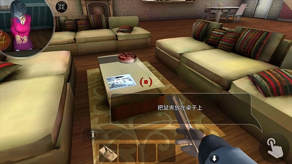 3、角色移动由左下角的虚拟摇杆控制,右侧屏幕滑动可调节视角方向;左上角的小地图会显示邻居的实时活动情况,这是判断行动时机的重要依据。