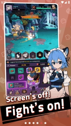 4、借助放置操作来收集资源,对猫咪的装备进行升级,以此提高探险的效率。