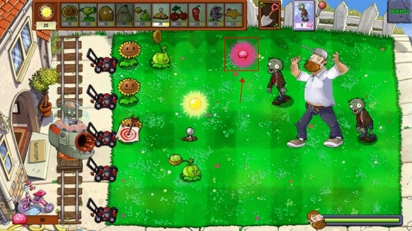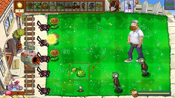 5、特别提醒:戴夫会随机现身攻击植物,其中向日葵尤其容易成为目标,一旦它遭到破坏,之前存储的阳光就会被全部清空。