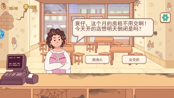 1、在本站打开这款游戏进入后,你会看到房东前来收租,这时候你只要说“消消火”,她就会点些烤串来吃。