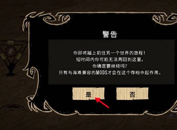 6、放置海洋之椅并点击激活,系统会弹出警告提示,确认后就能切换到海难地图。需要注意的是:部分配置较低的设备可能会出现加载卡顿的情况,并且不兼容双DLC的MOD将无法正常使用。