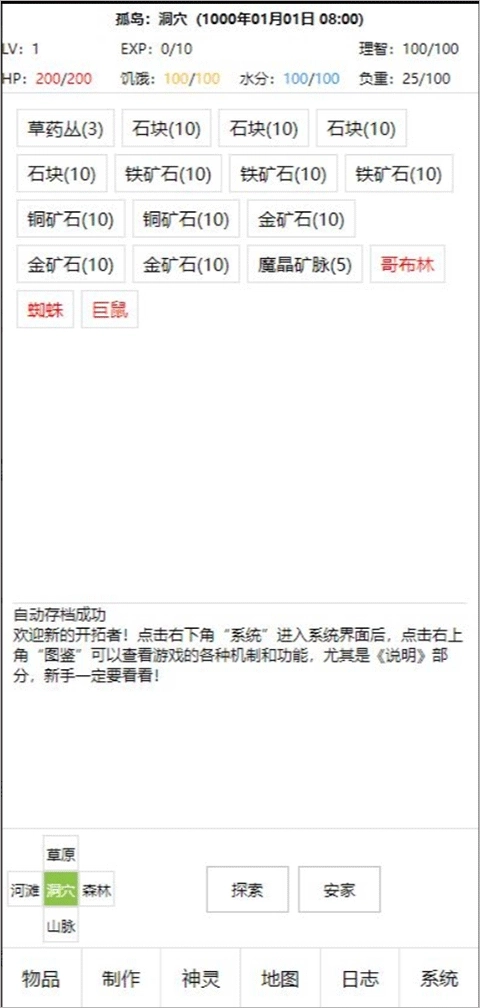 开拓者游戏是一款轻量型文字冒险游戏,玩家将化身为开拓者,在未知世界中努力生存下去。游戏中种族特色鲜明,哥布林擅长采矿、史莱姆精于制作武器,每个种族都有独特的用途,玩家可以收集矿石与魔晶来发展自己的家园。游戏无需氪金,也没有广告干扰,占用内存空间小,玩家通过探索地图还能解锁新技能,其文字描述风格如同经典老网游,极具代入感。从解决温饱问题到保障自身安全,玩家将一步步成长,游戏策略自由,可玩性颇高,快来一同体验拓荒的乐趣吧!