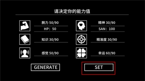 2、点击newgame进入游戏后,首先要确定自己的能力值。