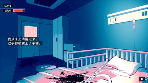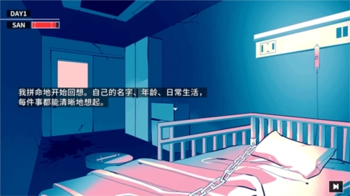 7、点击字幕就可以推进游戏,我们现在被锁在了床上