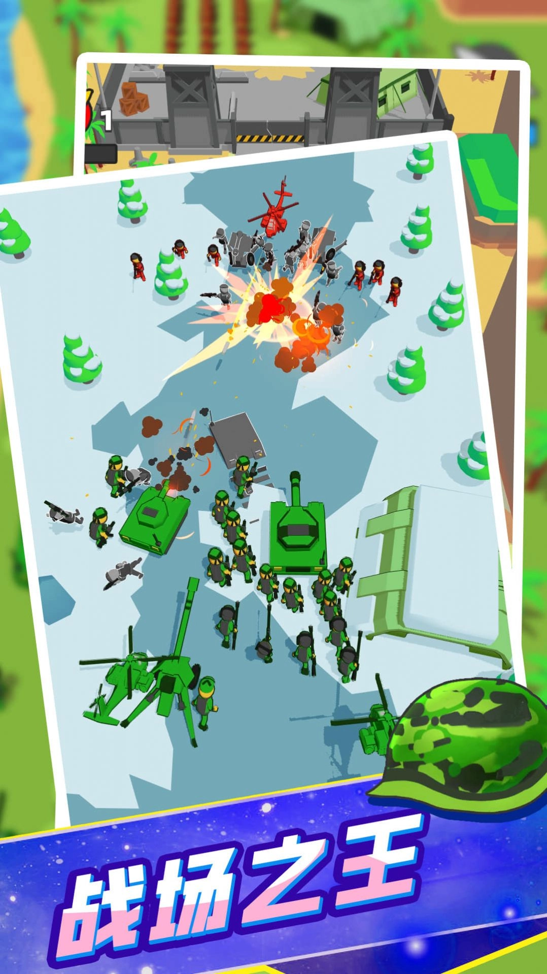 1、真实还原战场场景,每一个关卡都充满挑战,卡通风格更能带来欢乐的游戏体验。