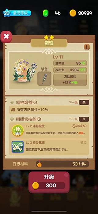领袖增益:当指挥官等级达到10级、20级、30级、40级与50级时,所有方队的属性都会额外获得10%的提升。指挥官拥有“迷花绽放”和“奇妙花圃”两项技能:“迷花绽放”能够向敌军释放寄生花,让对方在7个回合内处于混乱状态;“奇妙花圃”则可以减少近战方队的召唤成本。迈雅的主动技能虽不具备直接造成伤害的效果,却能促使敌军自相残杀,不过敌军依旧会继续向前推进。她的被动技能同样能降低近战方队的召唤费用,这一特性在开局阶段较为适用,但到了后期,由于近战方队的使用频率大幅降低,该被动效果的实际作用就很难体现出来了。