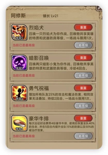 镇长等级达到15级后,会解锁第二天赋页。第二天赋页可以单独解锁一个4技能“牛排”。在进入boss图之前,先切换到带有牛排的天赋页,这样就能带着牛排进图;进入图后,再点击镇长头像切换回原来的刷图天赋页就可以了。