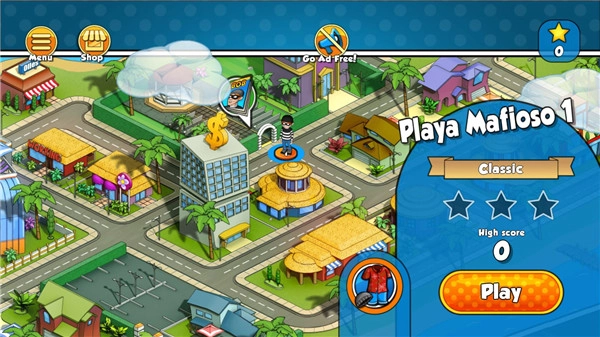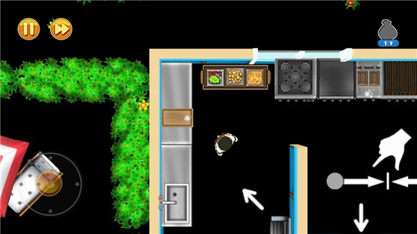 游戏任务:每关有三类任务,分别是收集场景养老金、躲避他人视线、在规定时间内完成任务并撤离;结束后会根据玩家三类任务的表现评分,前两类任务较易完成,时间任务只要动作迅速也不难;随着游戏推进,会出现更多元素,有需的机关,可借助道具过关,道具使用需依靠策略。