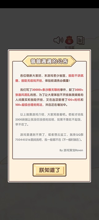 我的人生游戏,进入游戏后会看到游戏的公告;