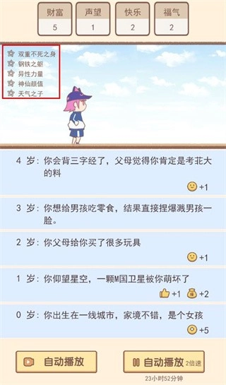 然后会自动播放人物每一岁所经历的事件,感受趣味人生。