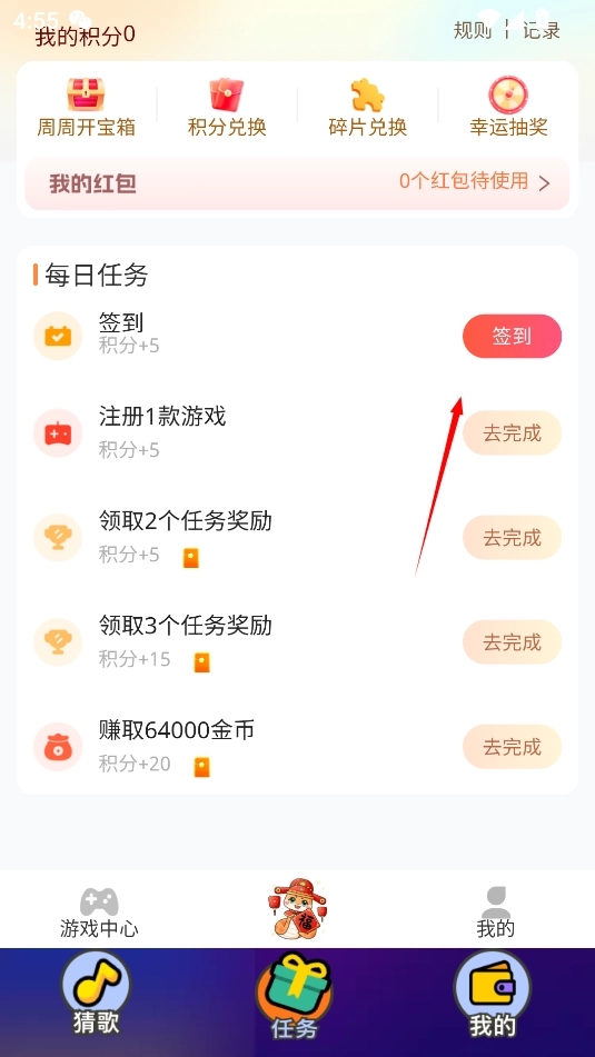 然后你就能在游戏中猜歌闯关领红包了