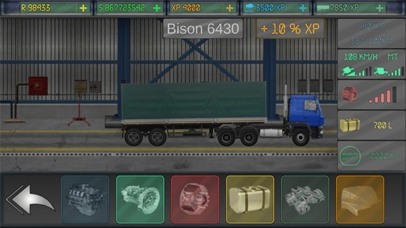 选好卡车和货箱后,点击界面上的第二个按钮就能对卡车进行改装,还可以升级卡车的各个配件。