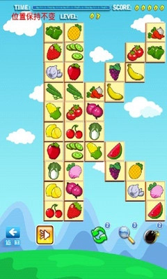 1、只需要去点击各种相同颜色大小的蔬菜以及水果就可以完成消除的任务了,也会有时间的规定的。