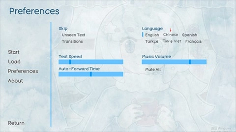 首先我们进入游戏的主界面,能看到当前界面显示的仍是中文,接下来点击游戏菜单里的preference选项。
