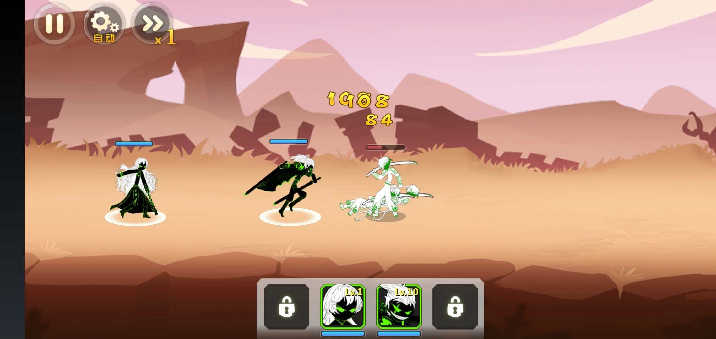 游戏中玩家同时能上阵四名火柴人英雄,点击即可切换。