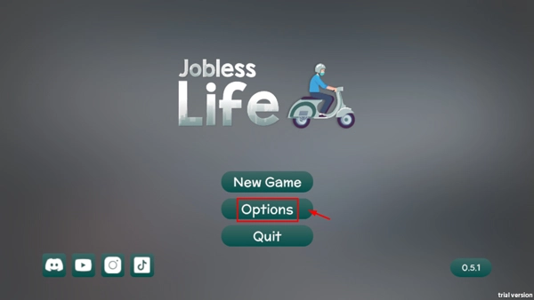 1、打开失业生活游戏,点击options;