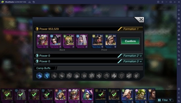 游戏中理想的阵容是1-2堡垒、1-3勇士、1-2刺客和1-3精神。显然,没有明确的数字可以放置,因为英雄的角色并不能真正表明他们拥有什么样的统计数据。所以理论上,你可以把勇士放在一个堡垒的前线。位置也很重要。将生命值最低的单位放在球队的最后,将防御最高的单位放在前排是一个很好的一般规则。