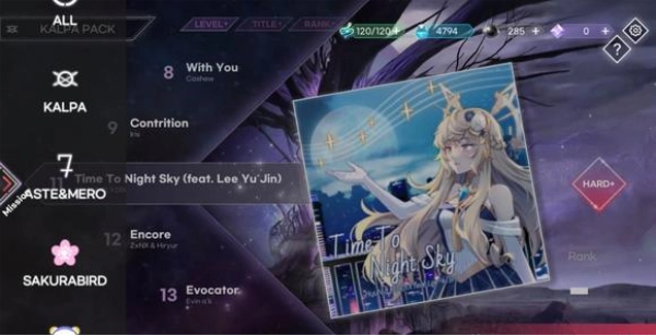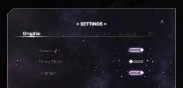 每首歌曲都有专属的星际主题插画,打击特效会随着连击数的增加而不断升级。