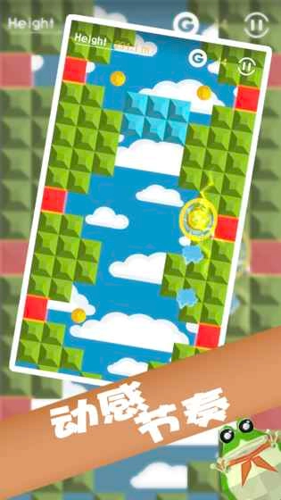 滑动屏幕,青蛙将借助舌头的弹力将自己弹到更高的地方