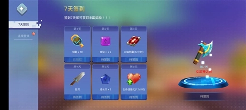 3、进入游戏,首先可以签到获取奖励;