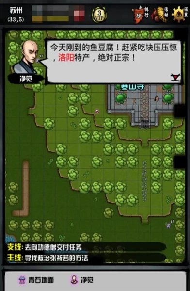 在沧州(3,2)接取第一颗珠子的任务后,前往木桥(15,2)进行探索。在此处选择“栏杆”并执行“爬下去”的操作,随后移动到(21,6)的位置探索,选择“摸鱼”可获得星辉石。之后从衙门所在位置上岸返回,将星辉石镶嵌在右上角的柱子处。
