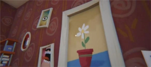 5、沿着梯子进入室内,用任意一件物品击中墙上位置最高的那幅画,就能打开旁边的白色门。