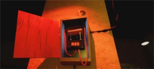 继续径直往前走,走到尽头后人偶旁边能拿到手电筒,接着前往尽头的屋子。屋内有扇铁栏门打不开,旁边有台发动机,不过通往发动机的门正在漏电。