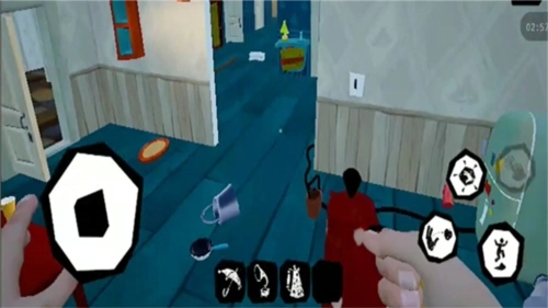 2、游戏里配备了各式各样的道具供玩家使用,部分道具能够帮助开启房门,还有一些则可以用来干扰邻居。